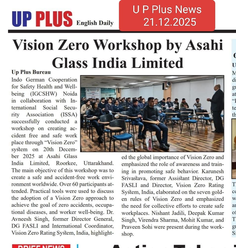 On 20th December 2025, the IGC-SHW organised 9th workshop on ‘Vision Zero Approach for Occupational Safety, Health and Wellbeing’ at Asahi Glass India Limited, Roorkee (Uttrakhand).