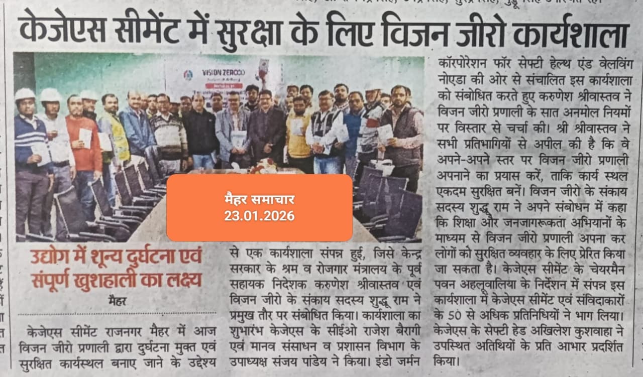 On 22nd January 2026, the IGC-SHW organised 12th workshop on ‘Vision Zero Approach for Occupational Safety, Health and Wellbeing’ at KJS Cement (I) Limited, Maihar (MP).