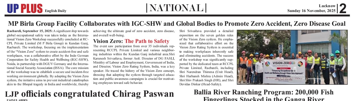 The Indo-German Cooperation for Safety, Health and Wellbeing (IGC-SHW), on 21 July, 2025, organised 1st Vision Zero workshop at Adani Defence and Aerospace Production Ctr, Kanpur (UP)