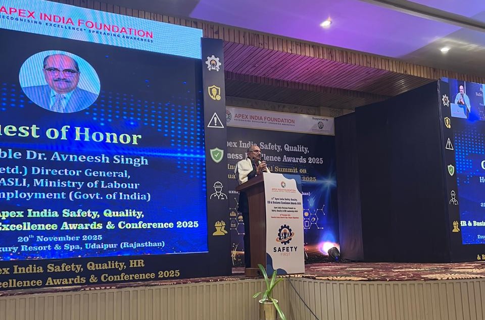 As chief guest, inaugurated and delivered inaugural address at the Apex India National Summit on Safety, Quality & Leadership on 20th November 2025 at Essentia Luxury Resort, Udaipur (Rajasthan).