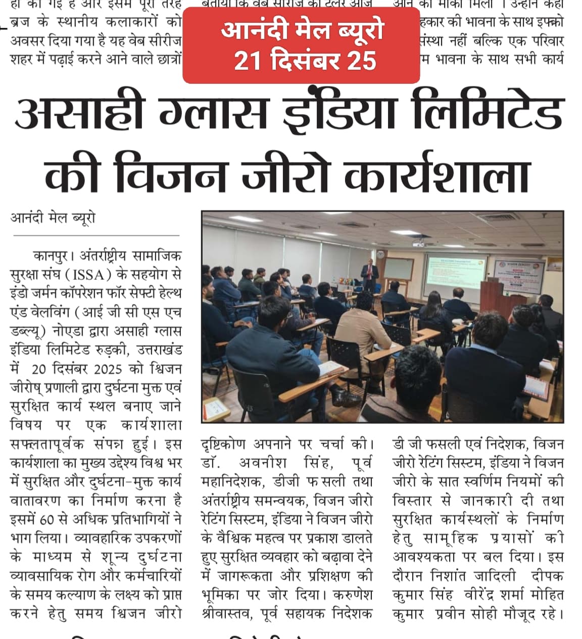 On 20th December 2025, the IGC-SHW organised 9th workshop on ‘Vision Zero Approach for Occupational Safety, Health and Wellbeing’ at Asahi Glass India Limited, Roorkee (Uttrakhand).